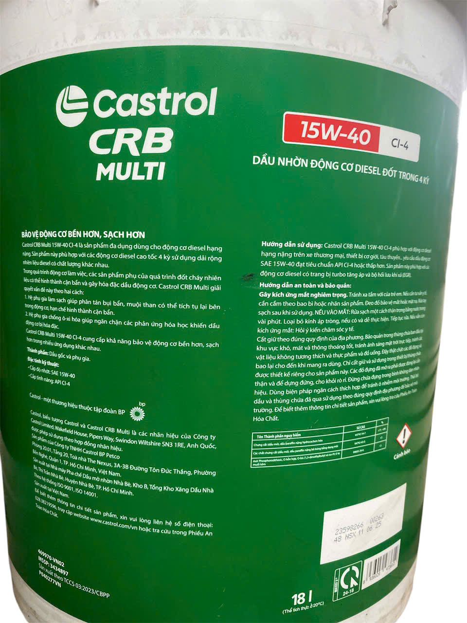 Trang bị cho xe của bạn Dầu Động Cơ Castrol CRB Multi 15W40 (18 lít) ngay hôm nay để bảo vệ động cơ và nâng cao hiệu suất trong mọi hành trình!