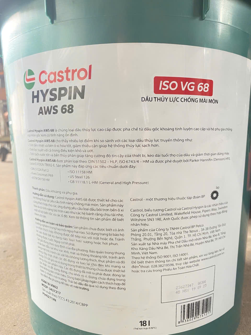 Tên sản phẩm: Dầu thủy lực Castrol Hyspin AWS 68 (xô 18 Lít) - Nhớt 10